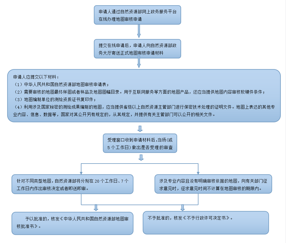 申請(qǐng)人送審地圖時(shí),應(yīng)當(dāng)提交試制樣圖或樣品原稿及加蓋公章目錄一式兩份。 用于互聯(lián)網(wǎng)服務(wù)等方面的地圖產(chǎn)品,還應(yīng)當(dāng)提供地圖內(nèi)容審核軟硬件條件。 |