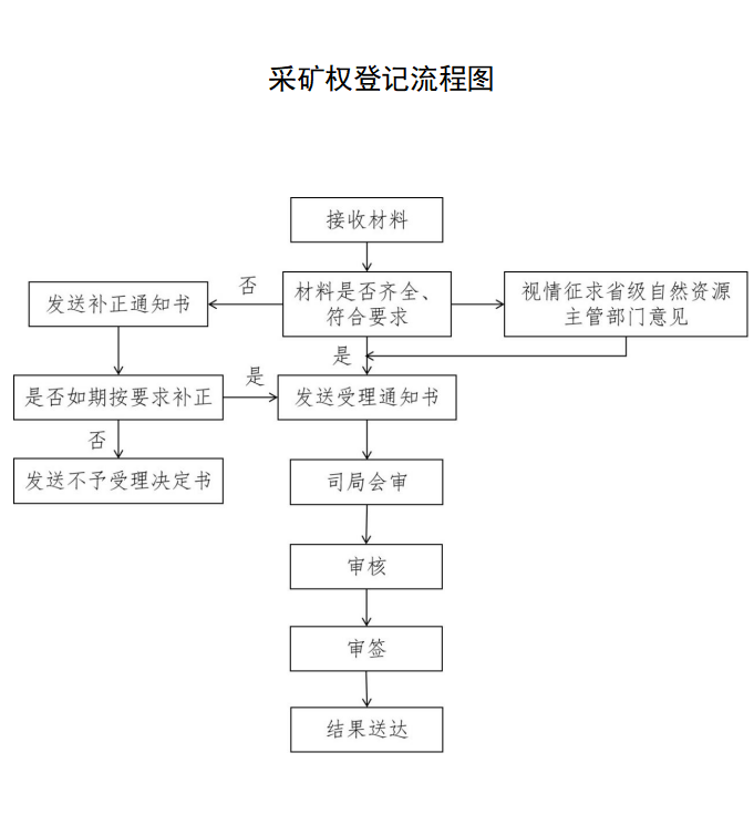 自然資源部政務(wù)大廳接收申請人報送的采礦權(quán)變更(開采礦種)登記申請資料。申請材料齊全、符合法定形式的,或者申請人按照登記管理機關(guān)的要求提交全部補正申請材料的,應(yīng)當(dāng)受理登記申請。