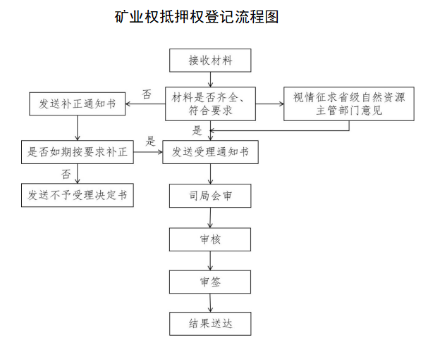 受理后,經審核符合抵押登記要求的,礦業權登記機關在登記簿上記錄抵押信息,并在礦業權證書上以注記方式標明抵押權人、抵押金額、抵押生效日期等信息。