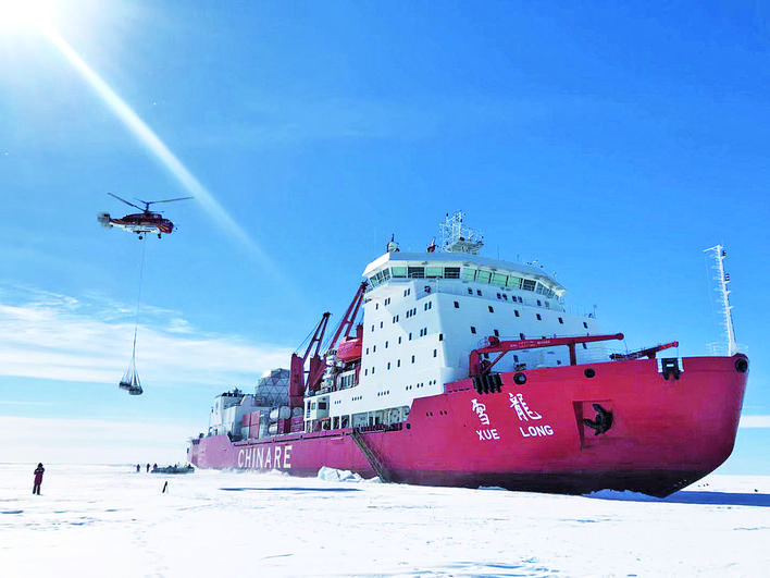 “到達中山站附近冰區(qū)后,重型裝備無法‘下船到站’的現(xiàn)象時有發(fā)生。”考察隊相關(guān)負責(zé)人說,此次重型雪地車能夠成功從船上運到內(nèi)陸出發(fā)基地,主要得益于3個方面。一是根據(jù)前期海冰勘探和總體卸貨方案研判部署,選擇了滿足直升機吊掛和冰面運輸要求的卸貨點。二是“雪龍2”號破冰給力,“雪龍”號配合默契,在既定時間內(nèi)到達作業(yè)點,為后續(xù)工作贏得了寶貴時間。三是在經(jīng)驗豐富的老隊員的帶領(lǐng)下,科考隊員們團結(jié)奮戰(zhàn),保障了運輸過程的安全順暢。