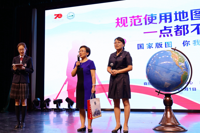 自然資源部中國(guó)地圖出版社教輔分社總編輯周濤、自然資源部地圖技術(shù)審查中心高級(jí)工程師陳會(huì)仙為北京四中2019級(jí)初一及高一新生共約900人講了一堂生動(dòng)的國(guó)家版圖知識(shí)科普課。兩位老師分別以“地圖大有趣”“版圖無(wú)小事”為題,從地圖的歷史沿革及識(shí)別“問(wèn)題地圖”等多個(gè)維度深入淺出地闡釋了規(guī)范使用地圖,維護(hù)國(guó)家版圖尊嚴(yán)的重要性,并進(jìn)行現(xiàn)場(chǎng)問(wèn)答互動(dòng),贏得了學(xué)生的陣陣掌聲。