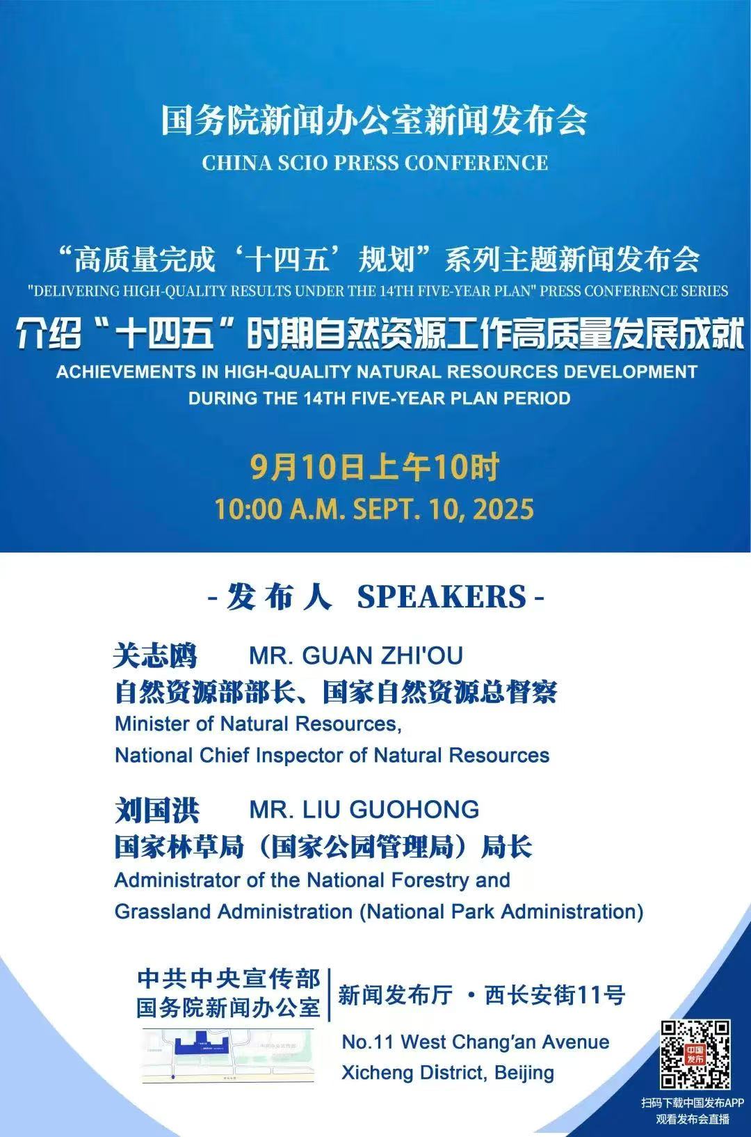 9月10日上午10時!國新辦新聞發(fā)布會介紹“十四五”時期自然資源工作高質(zhì)量發(fā)展成就