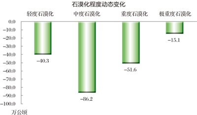 (二)石漠化程度持續(xù)減輕,重度和極重度減少明顯。