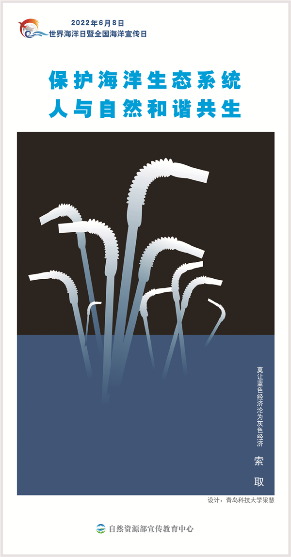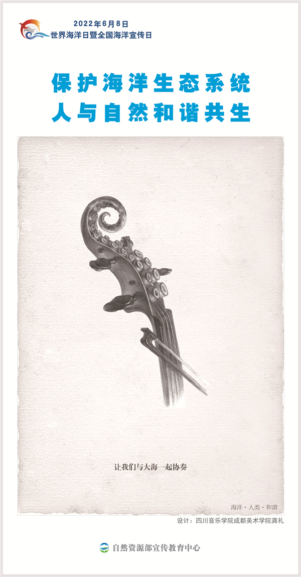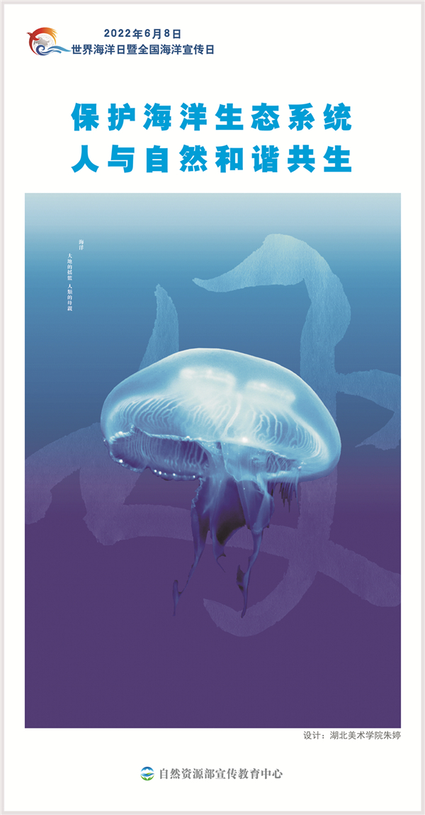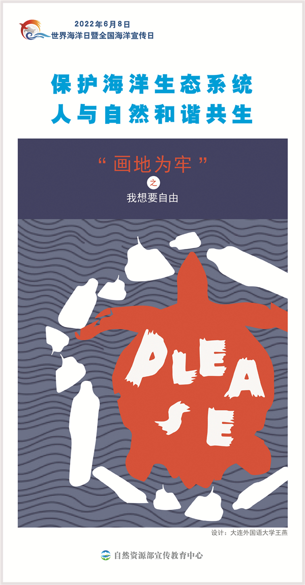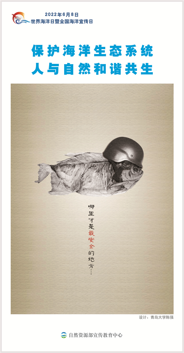今年6月8日是第十四個“世界海洋日”暨第十五個“全國海洋宣傳日”,主題是“保護海洋生態系統 人與自然和諧共生”。世界海洋日暨全國海洋宣傳日來臨之際,我們從自然資源部宣傳教育中心和中國海洋大學等單位共同主辦的全國大中學生海洋文化創意設計大賽歷年獲獎作品中,精選5幅作品制作了一套專題海報,供各地下載傳播。
