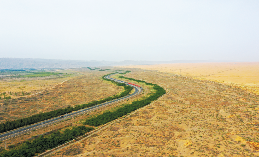 包蘭鐵路兩側的防風固沙林帶保障了鐵路平穩運行