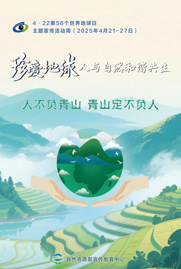 2025年4月22日是第56個世界地球日,宣傳主題是“珍愛地球 人與自然和諧共生”。自然資源部宣傳教育中心設(shè)計制作了主題海報,歡迎下載使用。