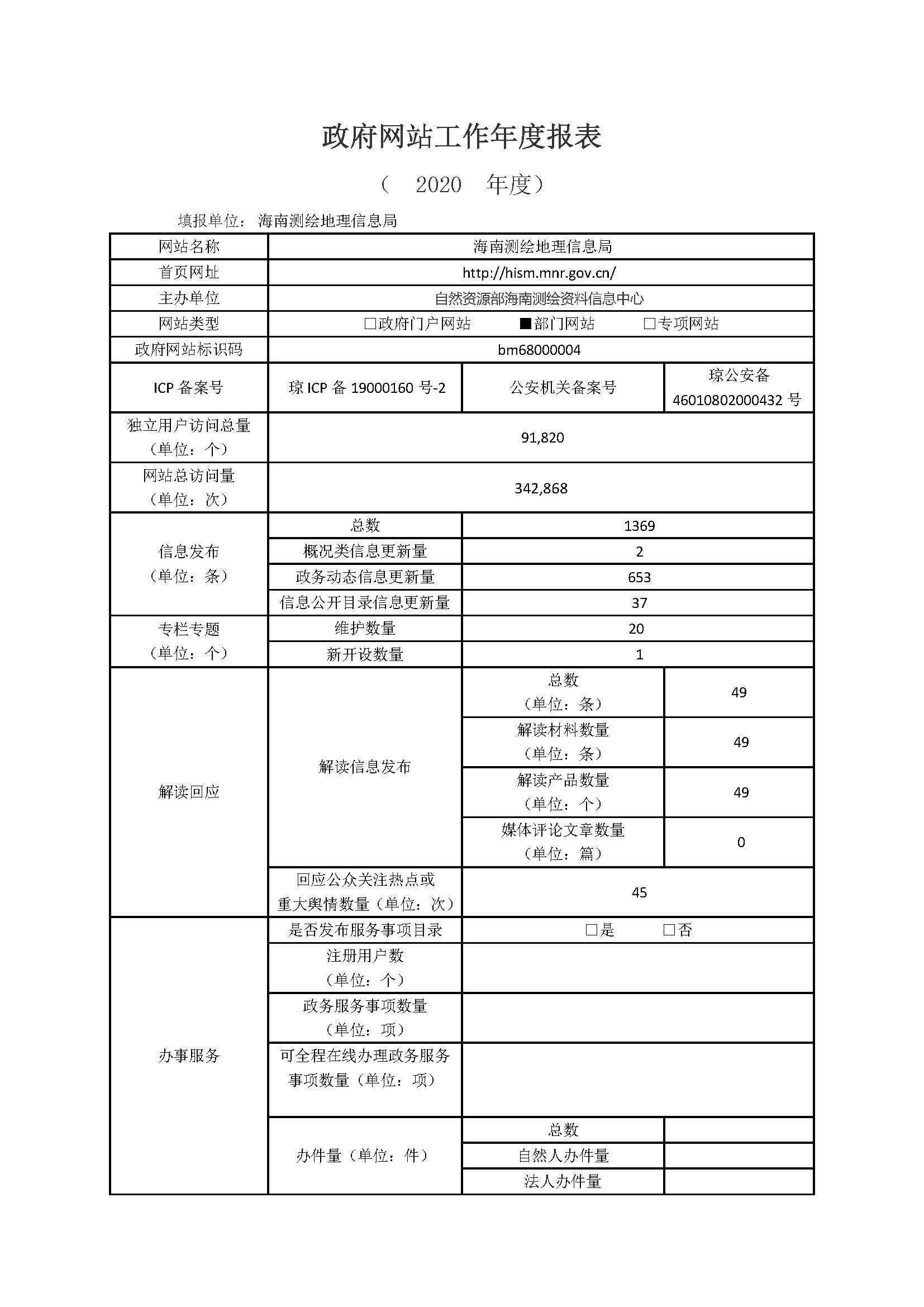 海南測繪地理信息局2020年度政府網站工作年度報表