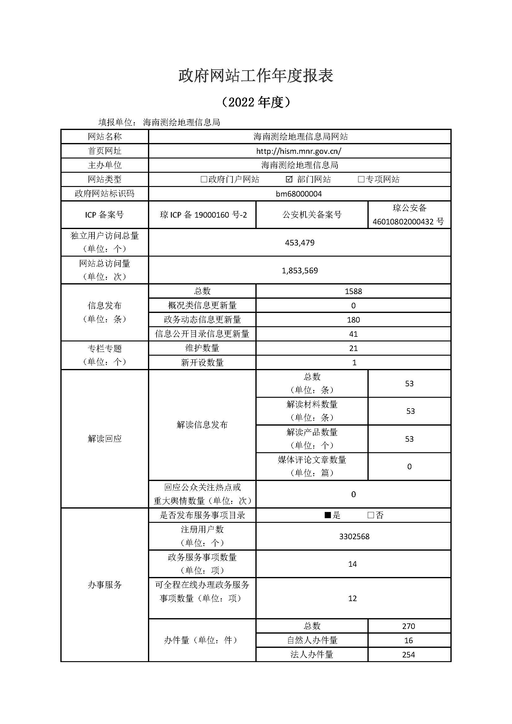政府網站工作年度報表(海南測繪地理信息局網站2022年度)