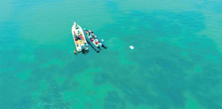 ②監測人員在河北曹妃甸開展海草床生態監測。