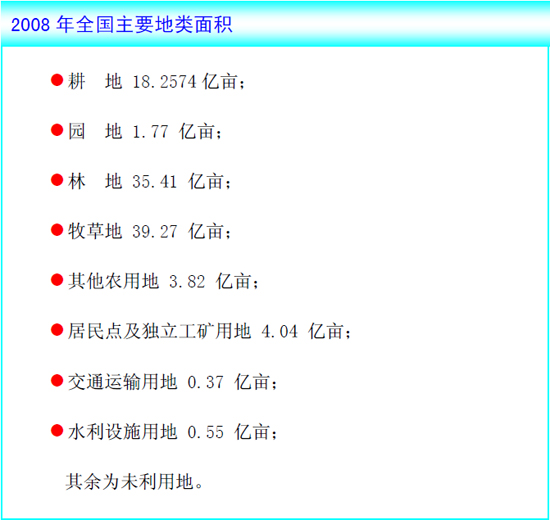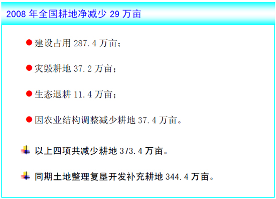 ● 落實(shí)耕地保護(hù)目標(biāo)責(zé)任制,大力推進(jìn)節(jié)約集約用地,堅(jiān)守18億畝耕地紅線。