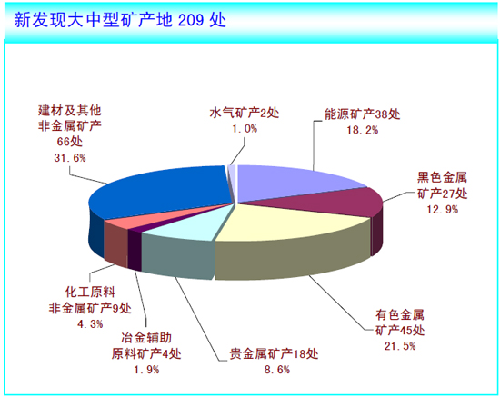 ● 地質(zhì)勘查投資保持較高水平,危機(jī)礦山和深部找礦順利推進(jìn),地質(zhì)找礦取得重大進(jìn)展。新發(fā)現(xiàn)大中型礦產(chǎn)地209處,煤炭、天然氣、銅礦等9種礦產(chǎn)勘查新增資源儲(chǔ)量增幅較大。
