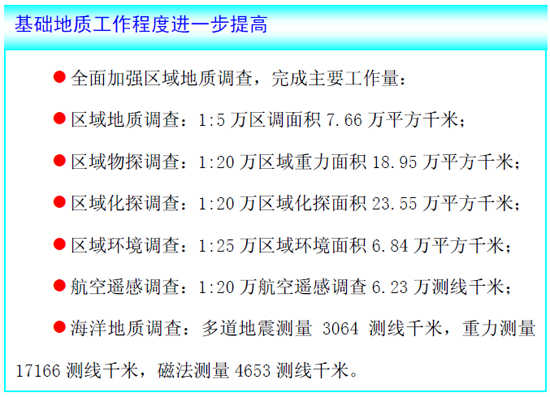 ● 基礎(chǔ)地質(zhì)工作程度進(jìn)一步提高。