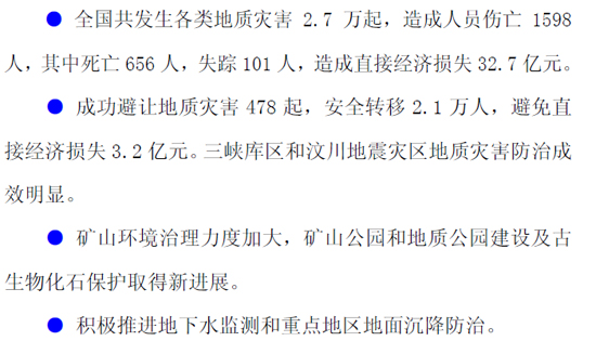 ● 加大地質(zhì)災(zāi)害防治力度,環(huán)境地質(zhì)服務(wù)領(lǐng)域進(jìn)一步拓展。