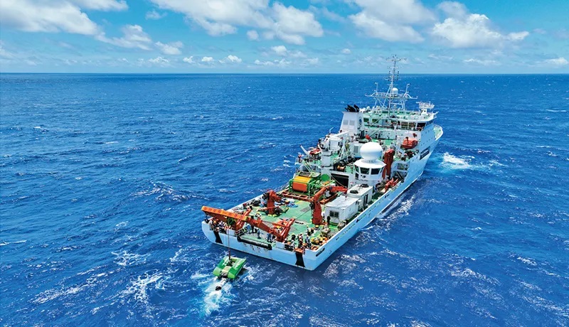 近期,我國深海礦產資源開發關鍵技術研究與裝備研制取得重大突破,由上海交通大學自主研制的深海重載作業采礦車工程樣機“開拓二號”成功完成海試。圖為2024年6月22日拍攝的“開拓二號”海試現場(無人機照片)。 新華社發 上海交通大學供圖