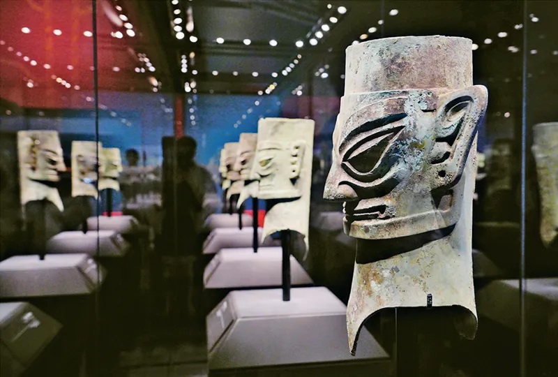 作為20世紀人類偉大的考古發現,三星堆不僅出土了眾多珍貴的文物,更以其獨特的文化面貌和豐富的歷史內涵,成為研究古代中華文明起源和發展的重要窗口。2024年6月27日,“探秘古蜀文明——三星堆與金沙”展在北京大運河博物館亮相。圖為辮發青銅人頭像。 人民圖片 宋家儒/攝