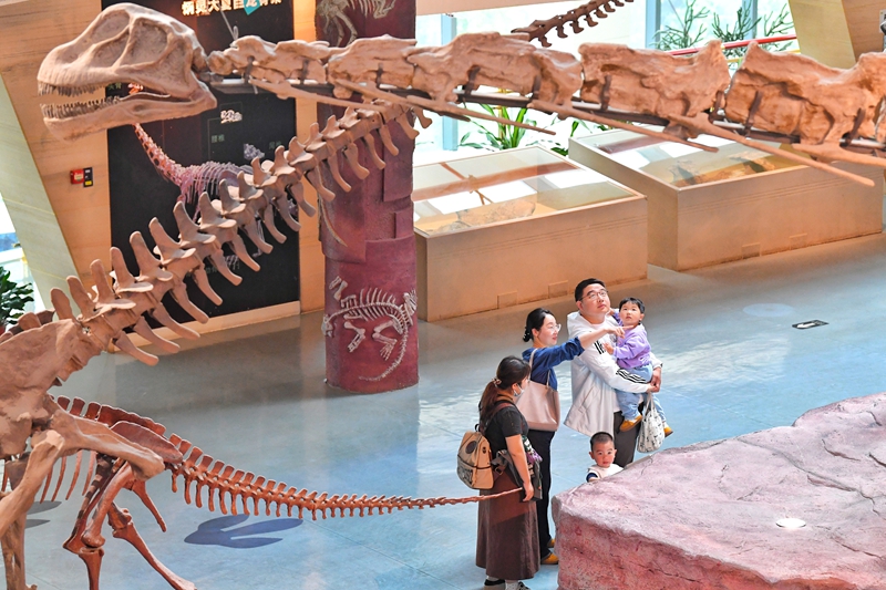 4月22日,家長帶小朋友在安徽省地質(zhì)博物館學習地質(zhì)知識,增強生態(tài)環(huán)境保護意識。