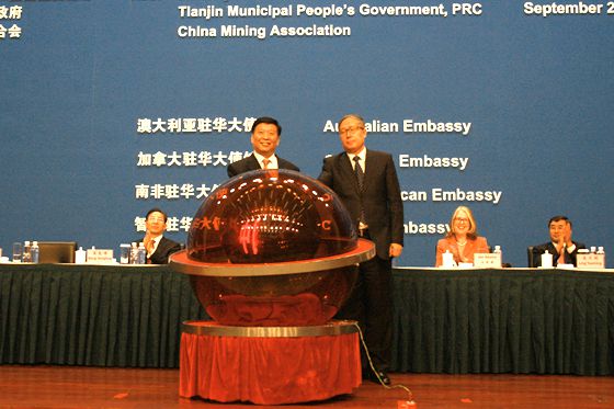 2017年9月23日,2017中國國際礦業(yè)大會(huì)開幕式在天津市梅江會(huì)展中心召開。本次大會(huì)主題為“弘揚(yáng)絲路精神,共促礦業(yè)繁榮 ”,圍繞全球礦業(yè)形勢與政策、礦業(yè)投資與金融、礦業(yè)勘探與開發(fā)、礦業(yè)綠色發(fā)展等議題進(jìn)行研討交流。圖為國土資源部部長、2017中國國際礦業(yè)大會(huì)組委會(huì)主席姜大明與天津市委書記李鴻忠共同啟動(dòng)2017中國國際礦業(yè)大會(huì)。(于洪奇 攝 徐曉婧 編)