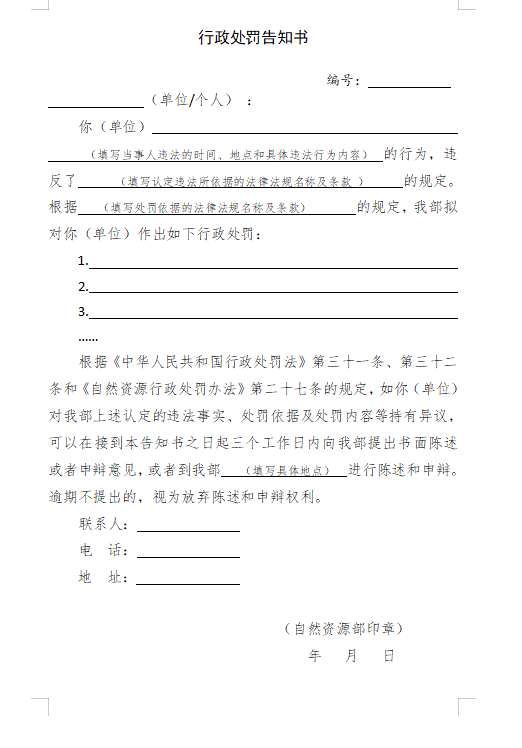 您現在的位置:首頁 > 專題 > 綜合 > 自然資源部行政執法公示(執法查處類) > 執法標準 > 文書格式